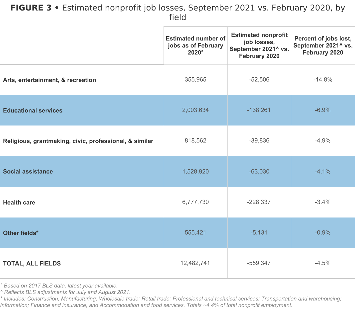 Overall, nonprofits lost an estimated 2,499 workers compared to August, representing an additional loss of about 0.4% over the 557,000 jobs still lost as of August.